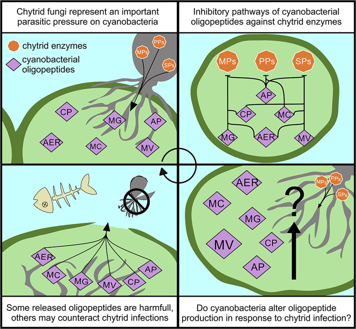 W naszej pracy analizujemy hipotezę, że oligopeptydy mogą pełnić funkcję obrony przed chytrydiami, oraz rozważamy, jak takie oddziaływania mogą wpływać na dynamikę zakwitów i jakość wody. To spojrzenie wskazuje na potencjalnie niedoceniany czynnik kształtujący funkcjonowanie ekosystemów wodnych i ryzyko związane z zakwitami sinic.